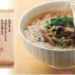 国産小麦の手延べそうめんを特殊製法で仕上げ、お湯を注ぐだけで簡単に美味しいにゅう麺が完成する。スープは枕崎産鰹節と北海道産昆布の合わせダシ。自社栽培のキノコ類を味付けした具材と京都の老舗『一休堂』の京七味も付く。
