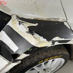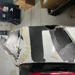 ラッピングの会社から「いや普通に補修しないと無理だよ(キッパリ)」とアドバイスをいただきホームセンターでFRP補修セットを購入し、なんとか補修したという状況です。