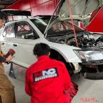 因みにマシンが動くようになったのは三河湾の5日前で、先ずは動かす前に洗車しなければならず、WRCの時に付いた泥や枯葉を落とすのには大変苦労しました。