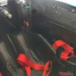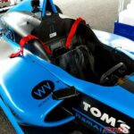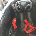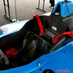 前置きが思い切り長くなったのだが、いよいよフォーミュラマシンの試乗に。ヘルメットとドライビンググローブをつけてトムススタッフのサポートでシートに収まり、シートベルトを装着してもらう。う~ん、さすがに狭い、狭いぞ。