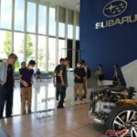 その後、安全技術ギャラリーでは初代レヴォーグに搭載された先進安全装備のアイサイトVer3についてのカットモデルでの実演を見学。最後に施設前では参加者全員での記念撮影をパチリ。