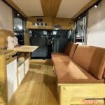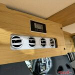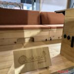 お風呂などに使われるヒノキ材は、耐湿性や耐水性に優れる木材。ヒノキの発する芳醇な香りにはリラックス効果があり、血圧の上昇を抑えたり、睡眠の質を上げたりするといわれていて、キャンピングカーの寝室にはもってこいの材質なのだ。また、虫や細菌を寄せ付けないといった作用あり、衛生面を気にする内装にも適している。