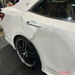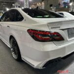 こちらもレクサスのホワイトパール塗装とブラックルーフ塗装を施しているが、エアロパーツはクラウンRS専用の純正フルエアロだ。20インチホイールを装着するも嫌らしさはない。