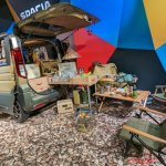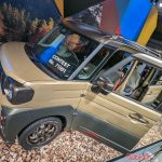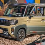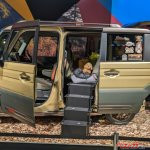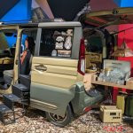説明員に「これ、新型(現行型)スペーシアをベースにしたスペーシアギアですよね?」と聞いてみると「ええと…このクルマは、あくまで参考出品車の【スペーシア パパボクキッチン】という、父と子のアウトドア、という提案を込めたコンセプトカーです」と、何を言っているのかよくわからない(いやわかるのだが)説明をしてくれた。