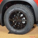 ボディサイドに目をやると、こちらもサイドガーニッシュやホイールをすべてブラックアウトしているのだが、ここではなんといってもタイヤが存在感を放っている。トーヨータイヤのオープンカントリーR/Tが、WR-Vをワイルドなオフロードへ誘っているのだ。ちなみにサイズは195/80R15だ。