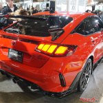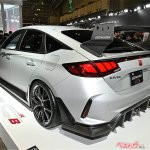 展示車両はフレームレッドだが、グロスブラックのフロントアンダースポイラーがサイドからリアへと回り込み、ワイド&ローを演出している。リアの顔つきがどうも違うなと思ったら、テールライトが無限オリジナルLEDに変更されていた。先代のFK8型でも支持を集めたヒットアイテムだそうだ。