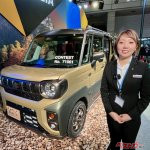 「これって新型スペーシアギアですよね?」とそうオートサロンで次期型ギアと目されるスペーシアパパボクキッチンを担当したスズキ四輪デザイン部の松原七月沙デザイナーを直撃した時だ。