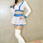 白と赤でまとめたコスチュームも魅力的なコンパニオンを写真でご紹介しよう。