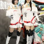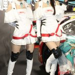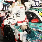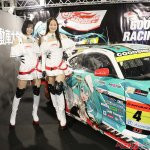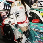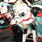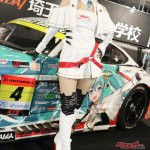 またグッドスマイルレーシングとのコラボで「初音ミク」のイラストが描かれたスーパーGT参戦マシンを展示。同チームのRQの涼雅さん、相沢菜月さんがコスチュームを着てブースに立った。