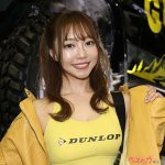 モータースポーツを盛り上げる2023年のダンロップガールの籾山采子さんと椎レイナさんがブースに立った。またコンパニオンの夏目みさこさん、城戸ひなのさんもブースの盛り上げに一役買っていた。