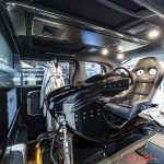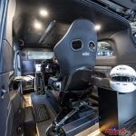 クルマ好きな富裕層がサーキットへの移動を楽しむことを想定してカスタマイズされた1台だ。最も特徴的なのは2列目以降のパッセンジャー空間。なんとシミュレーター筐体が丸々1台収まっているのだ。