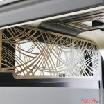 車内の限られた空間で豊かな時間を過ごすことを目標としていて、金属工芸家の木寺氏によるハンドメイドの装飾パネルを配置しているのが特徴的なポイントだ。忙しいセレブが時間を有効活用するためにオンラインミーティングを行う環境もインストールされている。