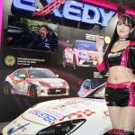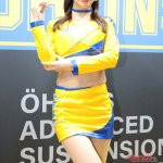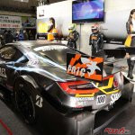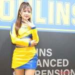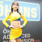 こちらではモデルコンパニオンが黒い衣装、黄色と青のOHLINSカラーの衣装がスーパー耐久ST-5クラスでチャンピオンとなったマシンのレースクイーンとなります。