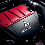 搭載されている2L直4気筒ターボエンジンは、最高出力280ps、最大トルク422Nmを発生。組み合わされるトランスミッションは5速MTと新開発の6速ツインクラッチミッションSSTの2種類。駆動方式は4WDをベースとした、三菱自動車独自の車両運動統合制御システム「S-AWC(Super All Wheel Control)」を標準装備している。