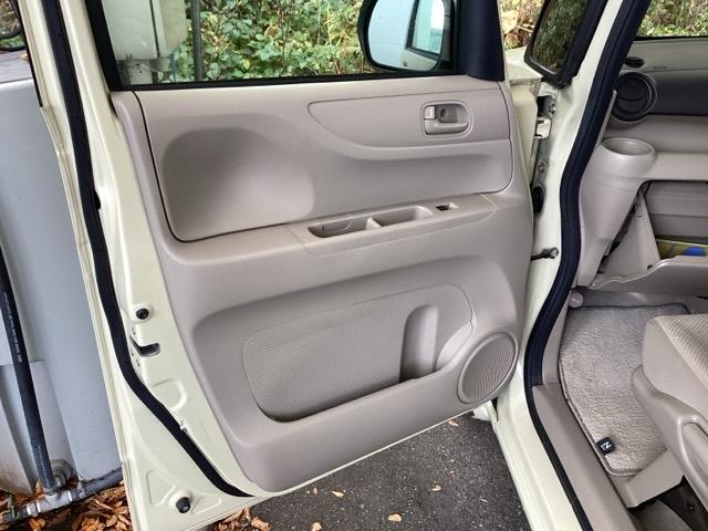 フロント広々、ベンチシートの運転席は、ハイトアジャスターが付いているので、快適にドライブができます。ハンドルはチルトステアリングで、ハンドル位置を上下に調節できます。