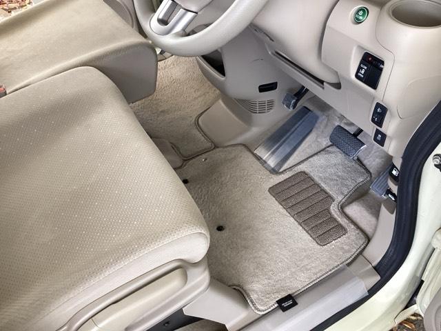 足元スッキリ、インパネシフトです。パーキングブレーキはフットブレーキタイプなので、運転席と助手席の間がスッキリしています。