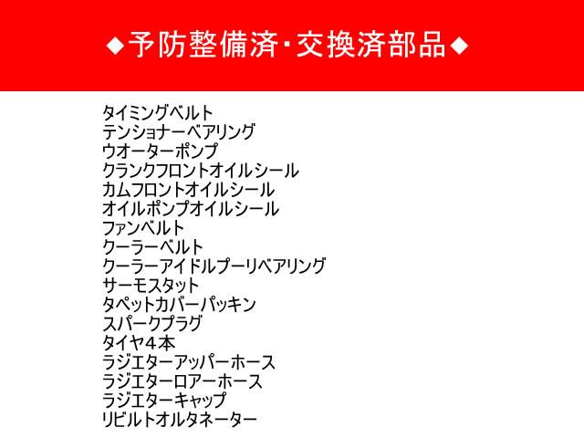 ◆予防整備済・ 交換済部品・タイヤ4本・ラジエターアッパーホース・ラジエターロアーホース・ラジエターキャップ・リビルトオルタネーター・